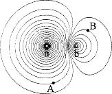 根据A点电势高于B点电势可知,a处为正电荷,qa>qb,选项B正确。
