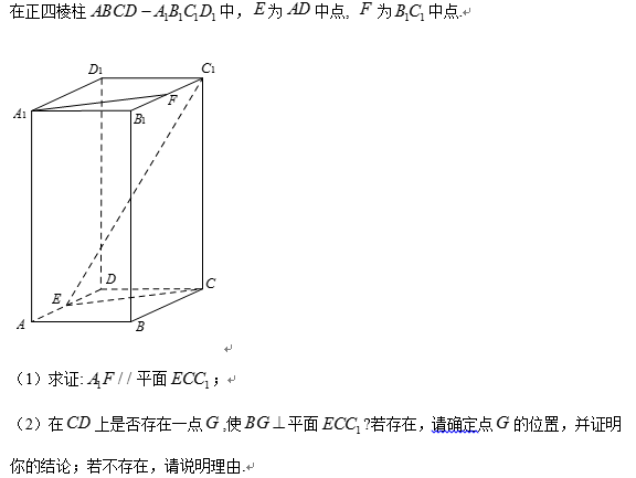 三棱柱ABC﹣A1B1C1中,AA1⊥平面ABC,AB=BC=AC=AA1,CD⊥AC1,E、F分别是BB1、CC1中点。