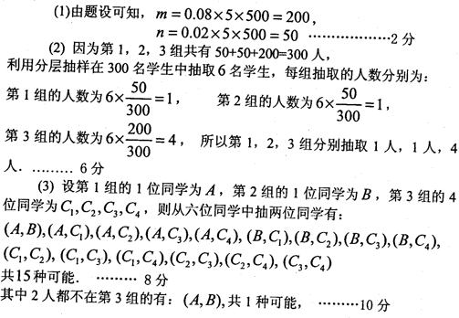 (3)在(2)的前提下,从这6人中随机抽取2人,求至少有1人在第3组的概率。
