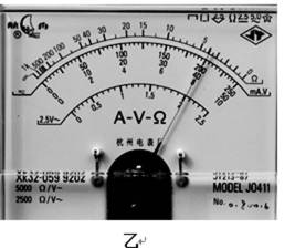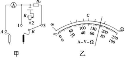 25.选择开关接1时,指针在图乙所示位置,则其读数为 。另一次测量时,选择开关接3,指针位置仍如图乙所示,则其读数为