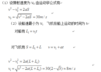 (1)如果航空母舰静止,战斗机被弹射装置弹出后开始加速,要保证飞机起飞安全,战斗机被弹射装置弹出时的速度至少是多大?