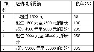 36.2011年6月30日,十一届全国人大常委会第二十一次会议表决通过了关于修改个人所得税法的决定,公布了新的个人所得税税率表(适用工资、薪金)