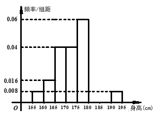 从某学校高三年级800名学生中随机抽取50名测量身高,据测量被抽取的学生的身高全部介于155cm和195cm之间,将测量结果按如下方式分成八组:第一组