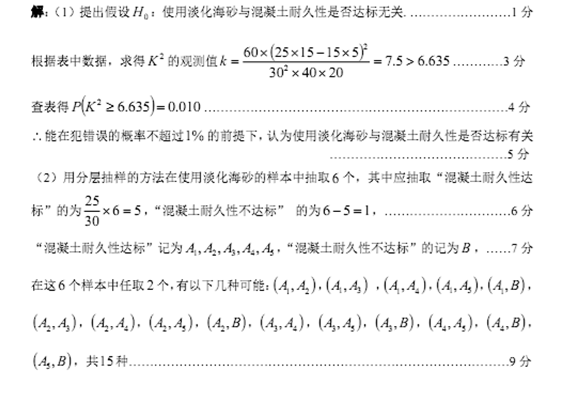 (2)若用分层抽样的方法在使用淡化海砂的样本中抽取了