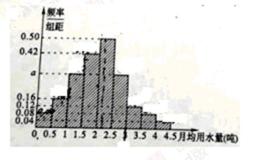 我国是世界上严重缺水的国家,某市为了制定合理的节水方案,对居民用水情况进行了调查,通过抽样,获得了某年100位居民每人的月均用水量(单位:吨),将数据按照[0,0.5), [0.5,1),……[4,4.5]分成9组,制成了如图所示的频率分布直方图。