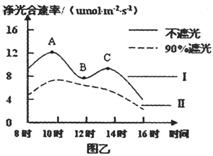 (4)分析图乙中曲线Ⅱ未出现“午休”现象的直接原因是 ( ) 。与A点相比,B点的C5含量______________。