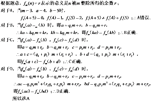 该题的本质问题即n被m整除余r,对于ABCD,使用特例法,以及排除法得出答案