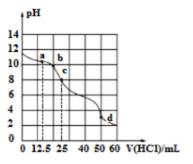 在a点处,加入的HCl是Na2CO3量的一半,因此混合后的溶液中溶质为NaHCO3、NaCl、Na2CO3且三者等物质的量,再就是NaHCO3的水解程度没有Na2CO3的强,因此离子浓度大小关系为:c( HCO3-)>c(Cl-)>c(CO32-),A正确。b点溶液中的溶质仍为NaHCO3、NaCl、Na2CO3根据电荷守恒得到:c(Na+)+c(H+)=c(Cl-)+c(HCO3-)+2c(CO32-)+c(OH-),B错误。c点加入的HCl与Na2CO3等物质的量,溶液中的溶质为NaHCO3、NaCl,此时利用电荷守恒与物料守恒得出c(OH-)+c(CO32-)=c(H+)+c(H2CO3),C正确。d点溶液中的溶质全为NaCl,c(Cl-)=c(Na+),D正确。