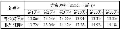 在大棚种植番茄时,“重氮肥轻钾肥”的情况比较普遍,科学工作者为验证钾肥的作用,在土壤钾肥不足的大棚中,研究了根外施加适量钾肥对光合速率的影响。请回答: