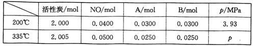 18.活性炭也可用于处理汽车尾气中的NO。在1L恒容密闭容器中加入0.1000 molNO和2.030 mol固体活性炭,生成A、B两种气体,在不同温度下测得平衡体系中各物质的物质的量以及容器内压强如下表: