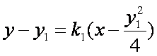 已知A、B为抛物线C:y2 = 4x上的两个动点,点A在第一象限,点B在第四象限l1、l2分别过点A、B且与抛物线C相切,P为l1、l2的交点。