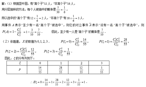 (1)如果用分层抽样的方法从“高个子”中和“非高个子”中提取5人,再从这5人中选2人,那么至少有一人是“高个子”的概率是多少?