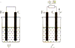 30.甲、乙两池的电极材料都是铁棒与碳棒(如图)。