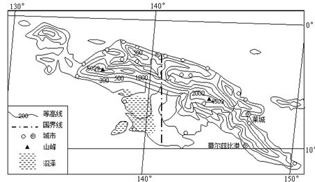 材料二:新几内亚岛地形图