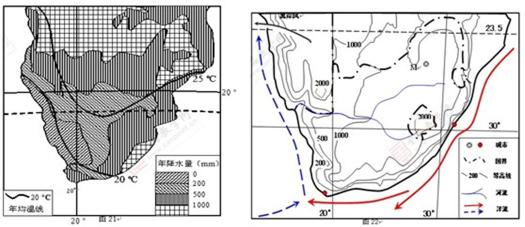 57.图(a)是世界某区域的年降水量和年平均等温线图,图(b)是其区域简图。读图并结合所学知识,回答下列问题。