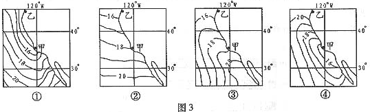5.图3为四位同学分别绘制的某局部海域8月表面水温图,单位为(℃)请读图3,四位同学绘制的图中,正确的是( )