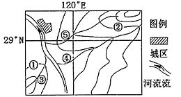 根据图中河流干流和支流的分布情况可以判断出靠近城区最近的两条等高线的数值为100m,由等高线的特点可以判断出①为100m,②为300m,故选A。