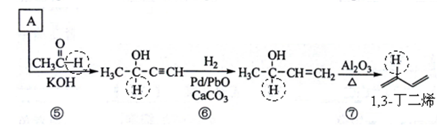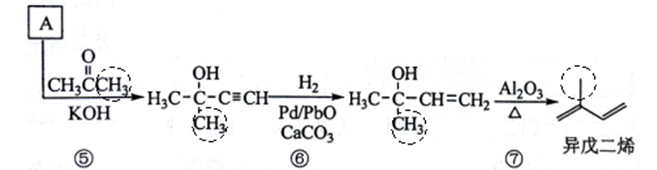 参照流程图中异戊二烯的合成路线,若把步骤⑤中的反应物丙酮改为乙醛,则经过