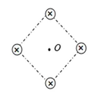 在O点处,各电流产生的磁场的磁感应强度在O点叠加。合矢量向左,则正电荷向纸外运动,根据左手定则,可判断。B选项正确。