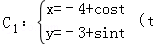 所以此曲线表示的曲线为圆心(﹣4,﹣3),半径1的圆;