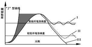32.右图中,曲线Ⅰ、Ⅱ、Ⅲ分别表示某野生动物种群数量超过环境容纳量后,其未来种群数