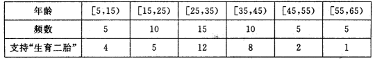 为了解人们对于国家新颁布的“生育二胎放开”政策的热度,现在某市进行调查,随机抽调了50人,他们年龄的频数分布及支持“生育二胎”人数如下表: