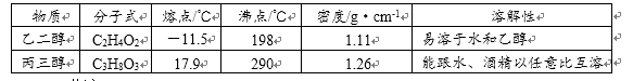 有一瓶乙二醇和丙三醇的混合物,它们的性质如下表。则将乙二醇和丙三醇互相分离的最佳方法是()