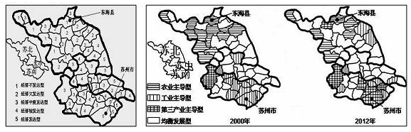 (3)说明 2012 年苏州市和东海县的农村经济发展特征,并针对其主导产业指明今后发展的方向。