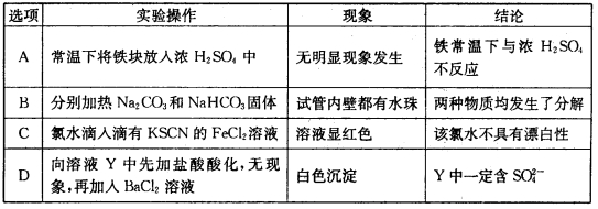 D.向溶液Y中先加盐酸酸化,无现象,排除了银离子、碳酸根离子、亚硫酸根离子的干扰,再加入氯化钡溶液,产生白色沉淀,Y一定含硫酸根离子,D正确。