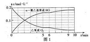 时达到平衡,乙苯和Cl2、α-氯乙基苯和HC1的物质的量浓度(c)随时间(t)变化的