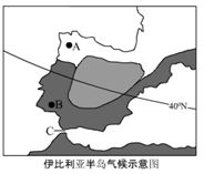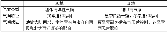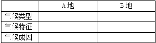 (1)比较A、B两地的气候类型、气候特征及成因。