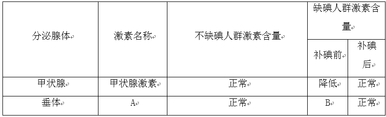 (1)下表是缺碘与不缺碘的两类人群中,血液内与甲状腺活动密切相关的两种激素含量状况。