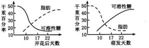 种子在成熟和萌发过程中会进行不同的物质转化,下图为蓖麻种子在成熟和萌发过程中糖和脂肪的变化曲线,请据图回答下列问题。