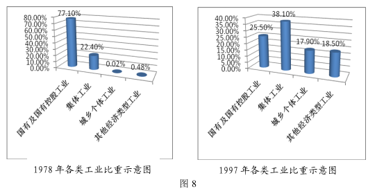 32.图8分别是1978年、1997年我国各类工业比重示意图,从1978年到1997年的变化表明