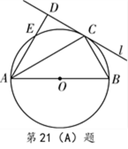 如图,圆O的直径AB=4,C为圆周上一点,BC=2,过C作圆O的切线l,过A作l的垂线AD,AD分别与直线l、圆O交于点D、E,求线段AE的长。