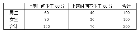 为了调査某大学学生在某天上网的时间,随机对lOO名男生和100名女生进行了不记名的问卷调查.得到了如下的统计结果: