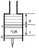 (2)图中竖直圆筒是固定不动的,粗筒横截面积是细筒的4倍,细筒足够长。粗筒中A、B两轻质活塞间封有空气,气柱长L=20 cm.活塞A上方的水银深H=10 cm,两活塞与筒壁间的摩擦不计。用外力向上托住活塞B,使之处于平衡状态,水银面与粗筒上端相平。现使活塞B缓慢上移,直至水银的一半被推以入细筒中,求活塞B上移的距离。设在整个过程中气柱的温度不变,大气压强p0相当于75 cm高的水银柱产生的压强。