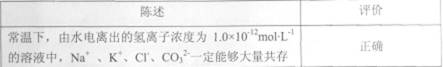 12.对下表中陈述的评价正确的是()