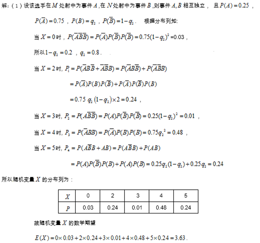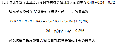 (2)试比较该选手选择上述方式发射飞镖得分超过3分与选择都在N处发射飞镖得分超过3分的概率的大小.