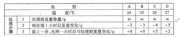表中数据是在光照强度相同且适食的条件下测量得到的有机物(葡萄糖)重量,若给予连续适宜的光照,______组生长速度最快;若给予连续适宜的光照12小时,再连续黑暗处理12小时,则C组幼苗一昼夜的净增加量,需要从空气中吸收______g二氧化碳用于光合作用。