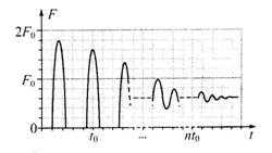 由题图可知:绳子拉力F的最大值为9F0/5,最终静止时绳子拉力为3F0/5=mg,根据牛顿第二定律得:9F0/5-3F0/5=ma,所以a=2g。B正确,A、C、D错误。