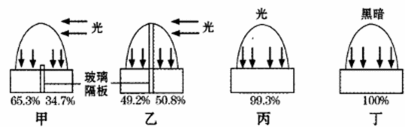 在甲、乙、丙、丁四个实验中:( )可以用来说明单侧光并不会破坏向光侧的IAA;( )可以用来说明单侧光引起IAA的侧向再分配。