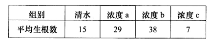 因清水中的枝条有生根,所以可能带有芽或幼叶,A正确;由于生长素类似物具有两重性,所以不能根据生根数来判断浓度大小,B正确;最适浓度可能在a和b之间,也可能在a和c之间,C错误;由生根数可知,高浓度抑制,低浓度促进,具有两重性,D正确。