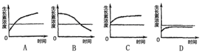 将一盆栽植物横放于地面,则其水平方向的主根近地一侧生长素浓度变化的曲线为(图中横线表示对根生长既不促进也不抑制的生长素浓度)( )