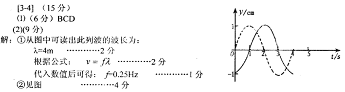 2) 请选择标度建立坐标系,并在坐标系中分别用实线从t=0时刻开始的振动图象(画出一个周期即可)