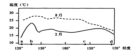 25.下图为太平洋沿30°纬线的表层水温变化示意图,有关图中a.b.c.d四处海域的叙述正确的是( )