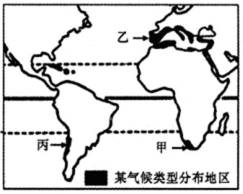 与乙地区相比,造成丙地区该种气候类型分布较狭窄的最主要因素是( )
