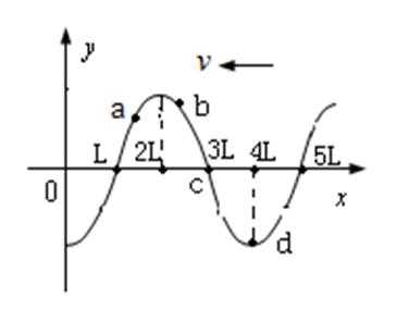 16.如图所示为一列简谐横波在t时刻的波形图,箭头表示波的传播方向,波速大小为v,波长λ=4L,a、b、c、d是介质中4个质量相等的振动质元,由此可知( )