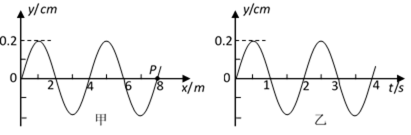 一简谐横波在x轴上传播,t=0时的波形如图甲所示。x=8m处质点P的振动图线如图乙所示。下列说法正确的是
