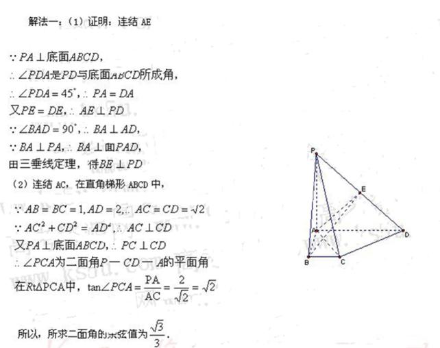 解法二:(1) 如图,建立空间直角坐标系,由已知可得:余弦